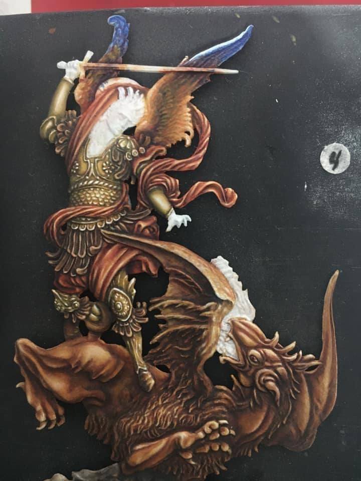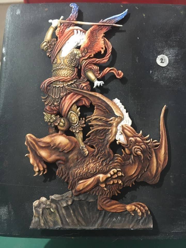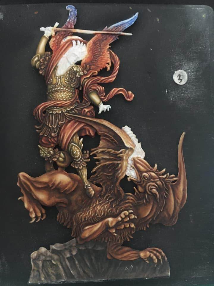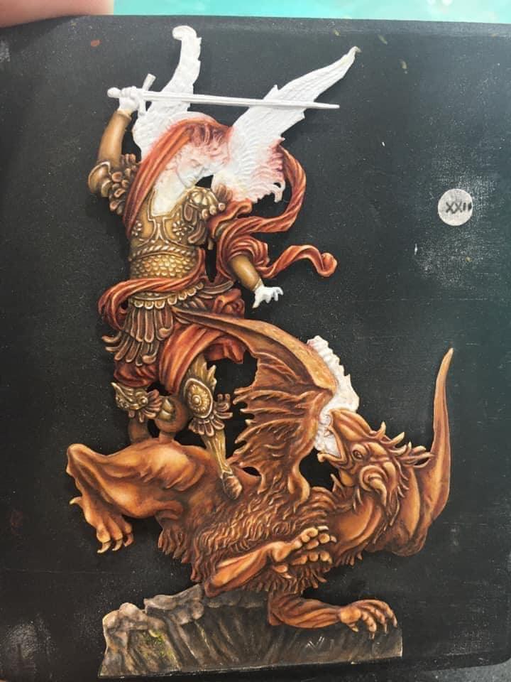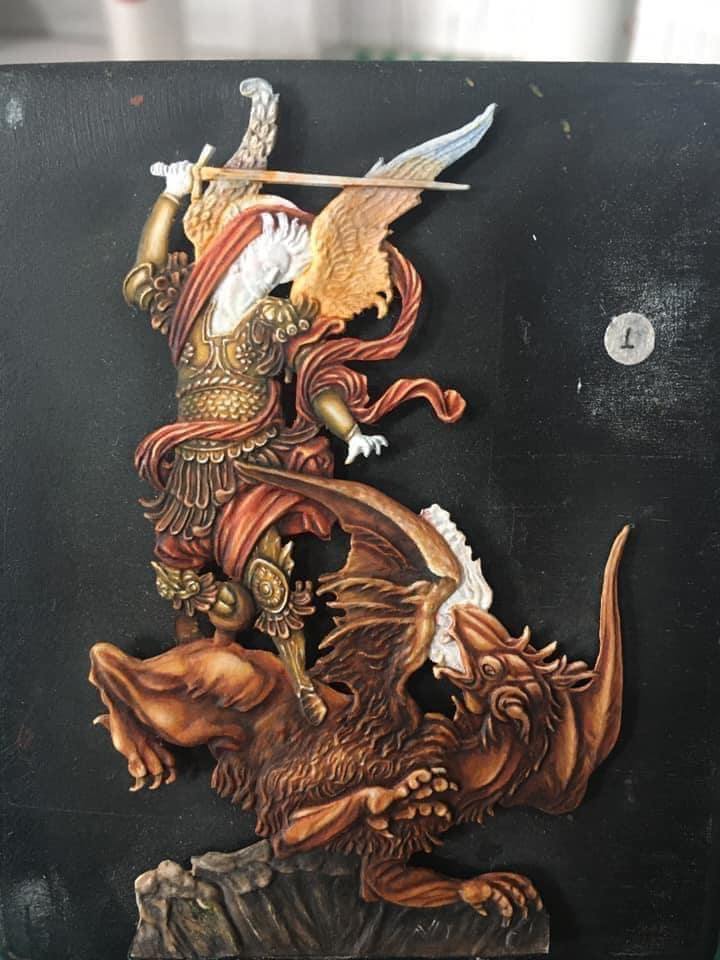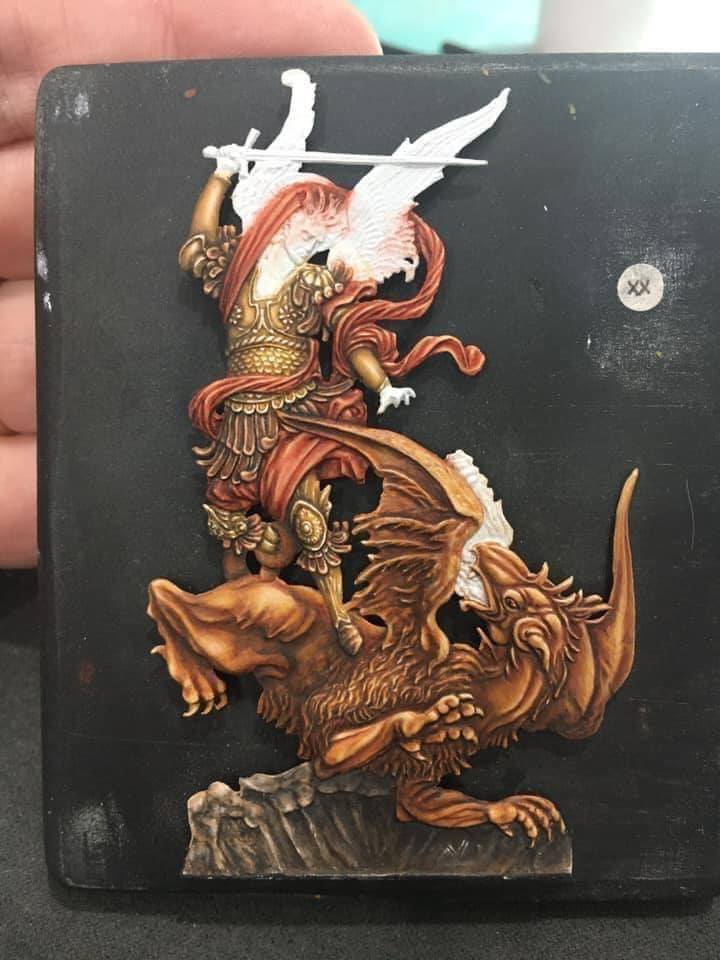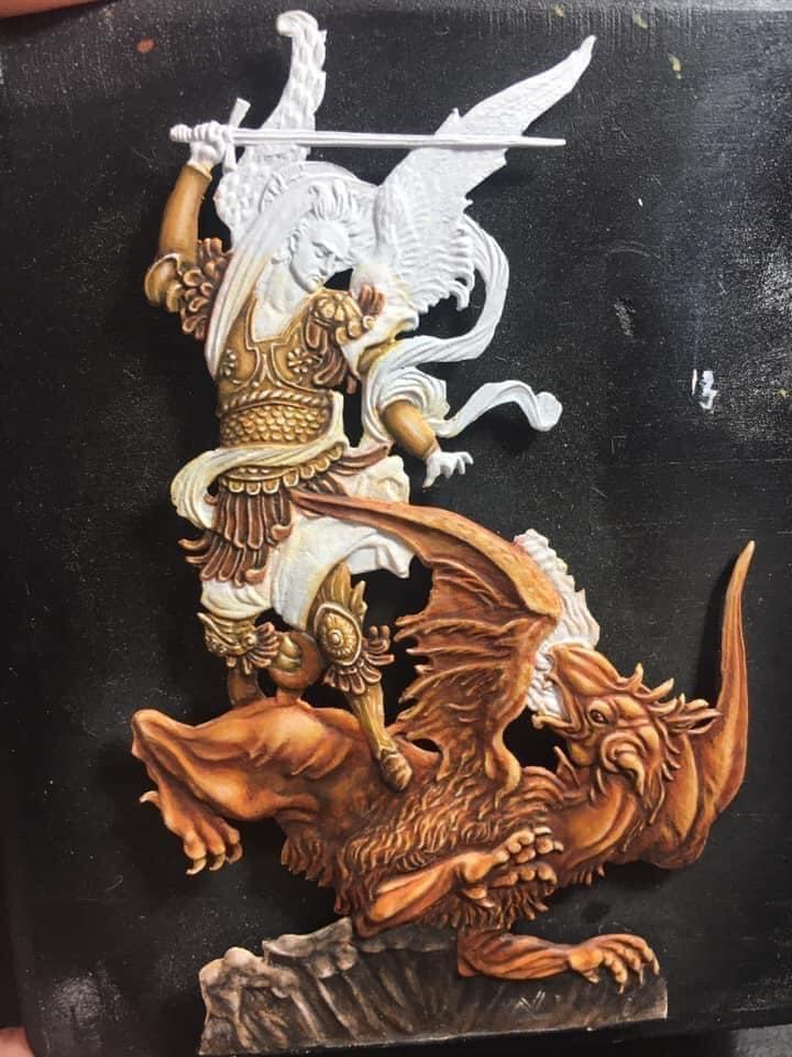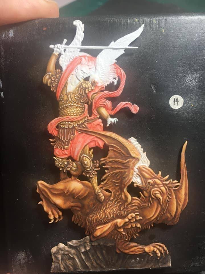 (Le processus de peinture est montré sur une figurine de 50 mm, où la technique des glacis à l’huile sur un apprêt en émail blanc a été appliquée).